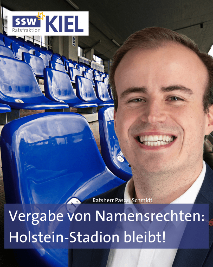 Zu der öffentlichen Diskussion über den CDU-Ratsantrag „Prüfung und Einführung von Namensrechten für städtische Infrastruktur und Verkehrsanlagen“ in Verbindung mit dem Holstein-Stadion erklärt Ratsherr Pascal Schmidt, sportpolitischer Sprecher der SSW-Ratsfraktion Kiel: