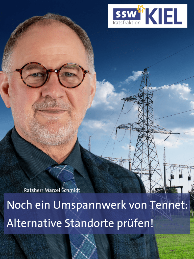 Zu der Diskussion über ein zweites großes Umspannwerk in Kiel erklärt der Vorsitzende der SSW-Ratsfraktion Kiel, Ratsherr Marcel Schmidt: