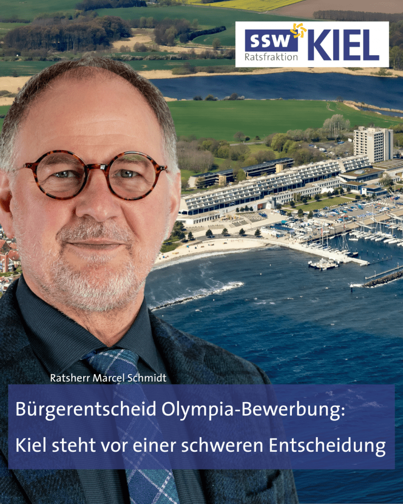 Zur Beschlussvorlage für einen Bürgerentscheid zur Olympia-Bewerbung Kiels in der kommenden Sitzung des Finanzausschusses erklärt Ratsherr Marcel Schmidt, Vorsitzender der SSW-Ratsfraktion Kiel: